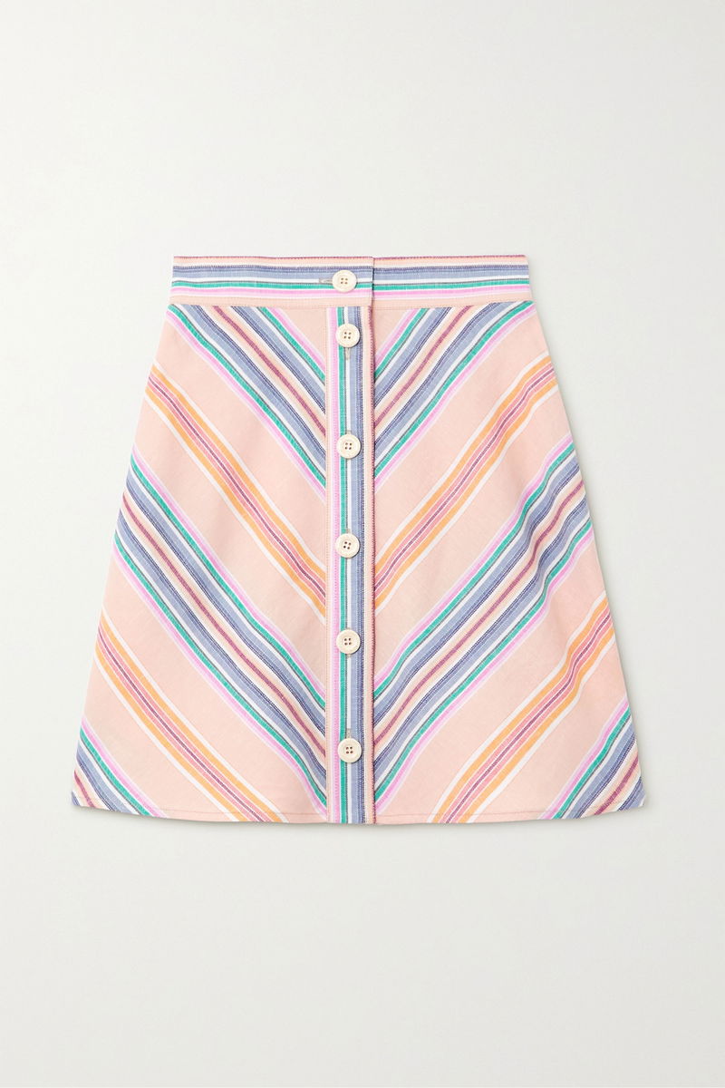 Vibrant and uplifting, See By Chloé's mini skirt feels fresh for spring. Cut from cotton and linen-blend in a classic A-line shape, it's patterned with stripes and has buttons tracing the front. Tuck in a simple white blouse and slip on a pair of ballet flats.