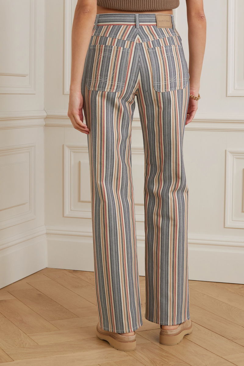 See By Chloe's jeans are striped in shades of red, navy and orange - perfect for adding a pop of color to neutral outfits. Cut from organic denim, they have a high-rise waist and slim legs that kick out slightly at the cuffs.