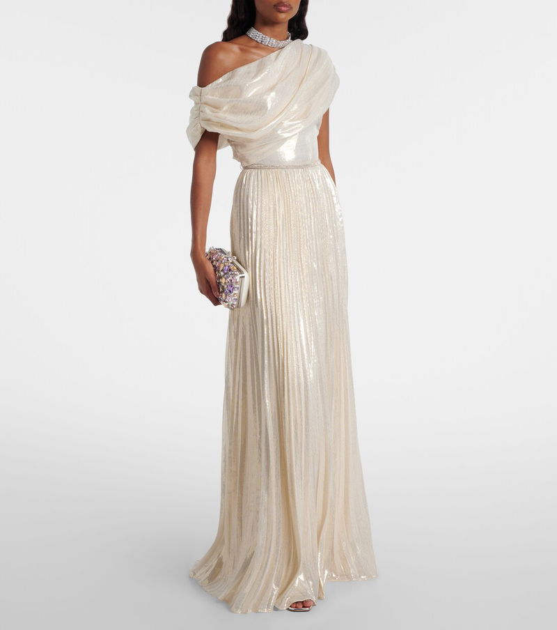 Asymmetric Draped Silk-blend Chiffon Maxi Dress