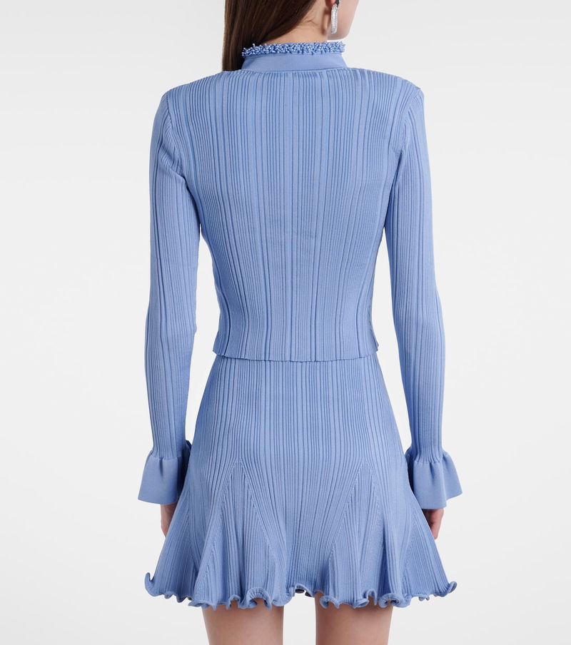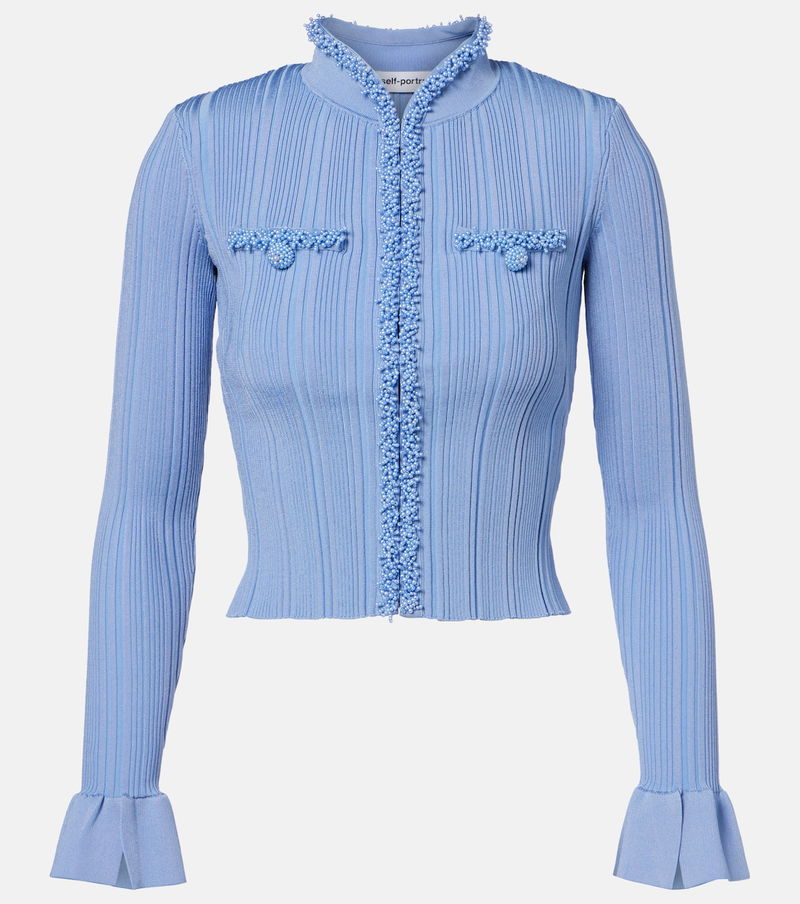 Beaded Ribbed-knit Cardigan
