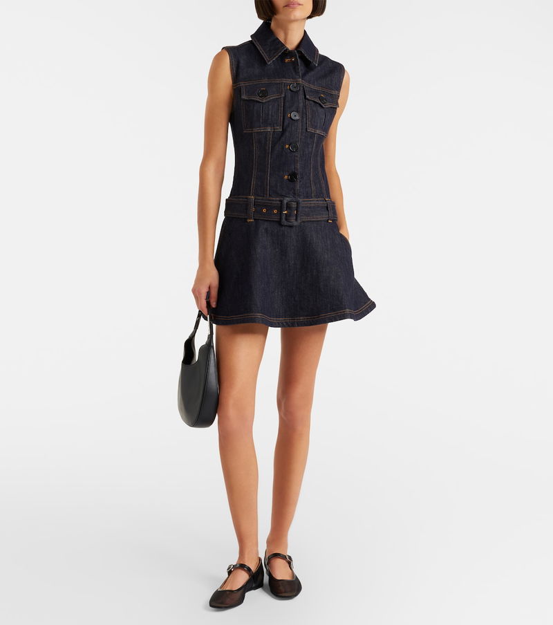 With a mission to celebrate women in every design, Self-Portrait has grown a strong cult following behind its soft, feminine aesthetic. Made from denim, this minidress features a flared skirt and a belted drop waist.