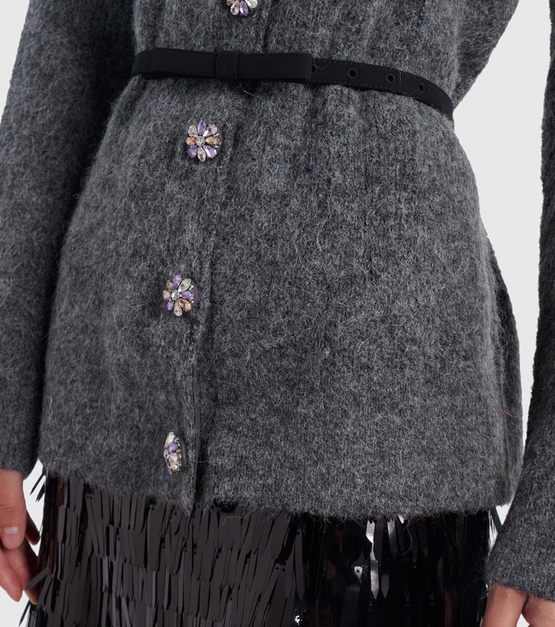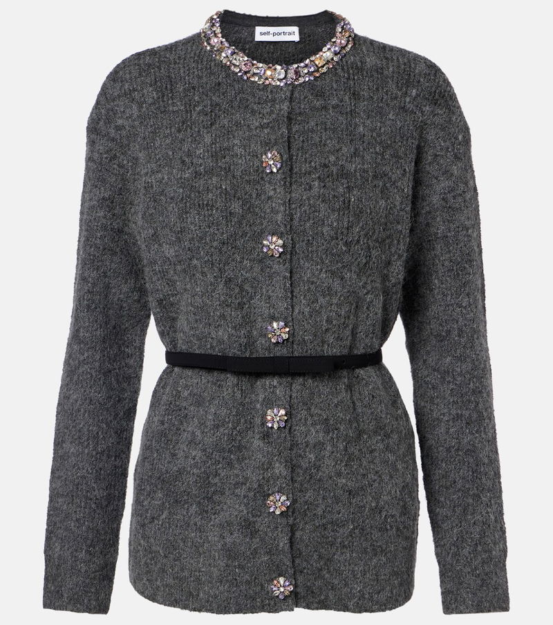 With a mission to celebrate women in every design, Self-Portrait has built a strong cult following for its soft graceful aesthetic. Cut from a plush knit with a brushed finish, this cardigan comes with embellished buttons and a slim belt.