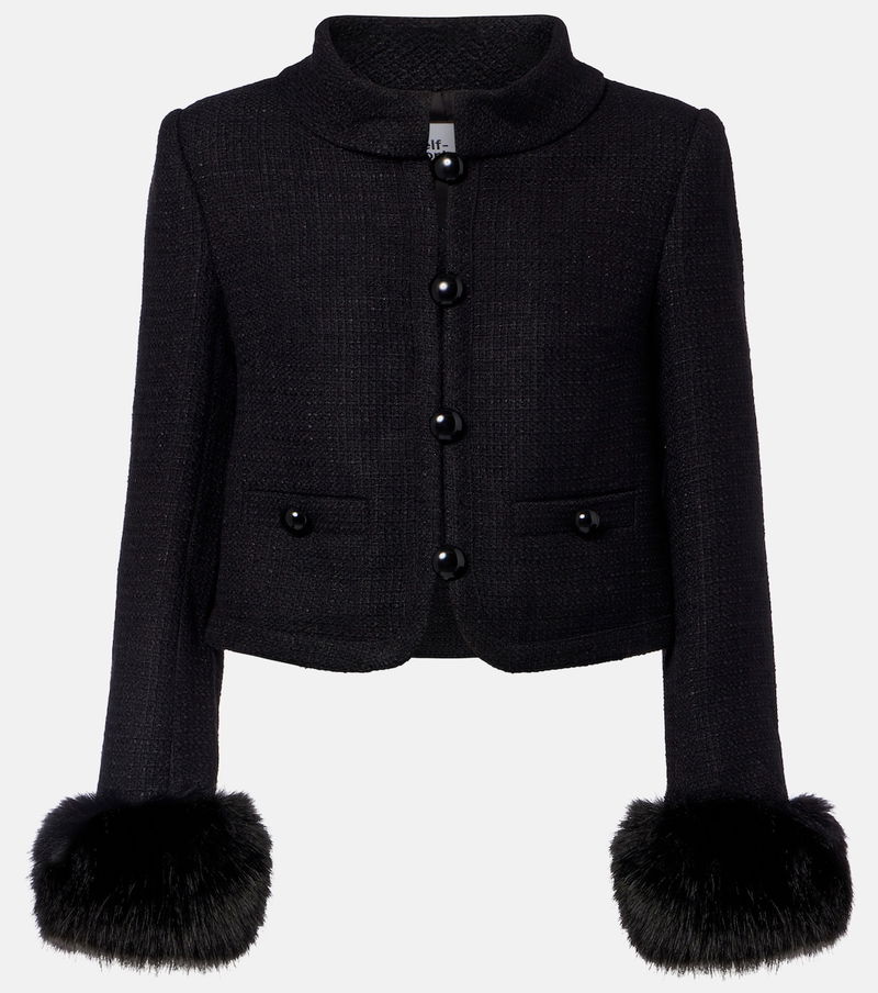 With a mission to celebrate women in every design, Self-Portrait has built a strong cult following for its soft, graceful aesthetic. This jacket is made from boucle' and features padded shoulders and plush cuffs.