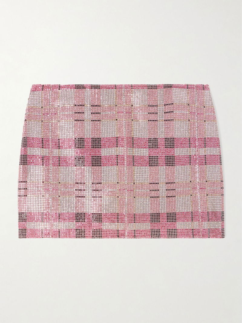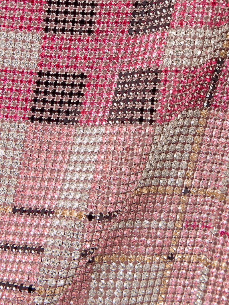 Self-Portrait's low-rise mini skirt is a nostalgic nod to Y2K. Made from pink faille overlaid with slinky silver-tone chainmail, it's encrusted with colorful crystals strategically placed to create a checked pattern.
