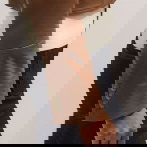 Self-Portrait leather jacket. Regular fit, cropped, double-breasted, spread-collar, long sleeves, three welt pockets at front, pleated at back, all-over grained leather, all-over padded, fully lined, elasticated hem.