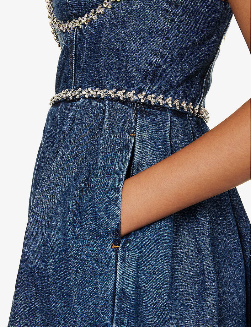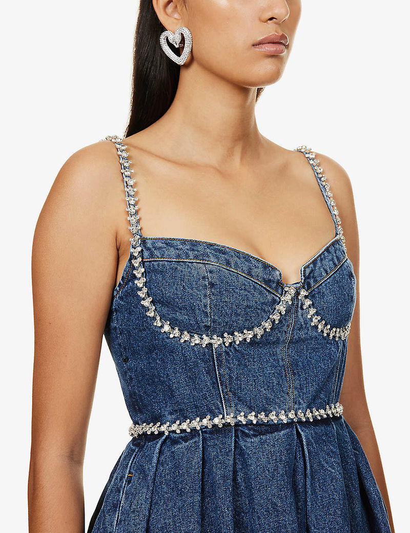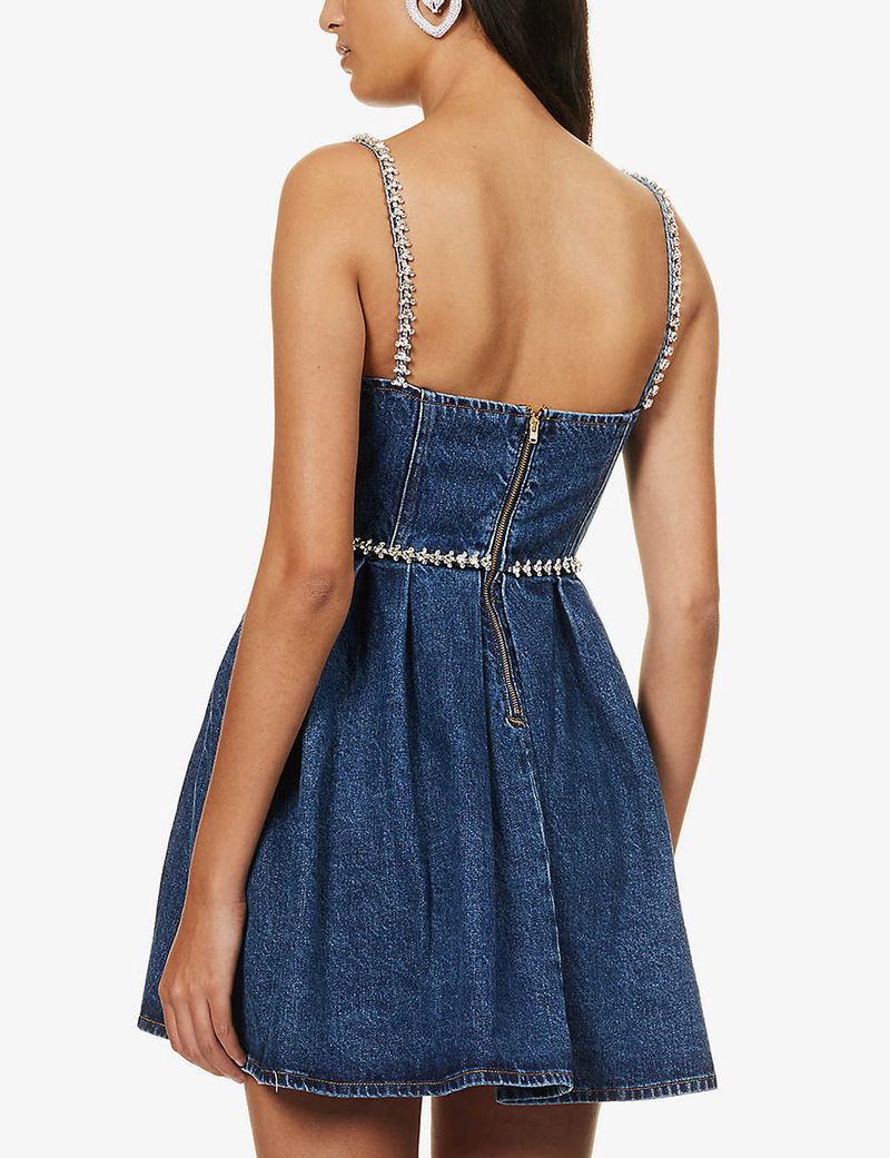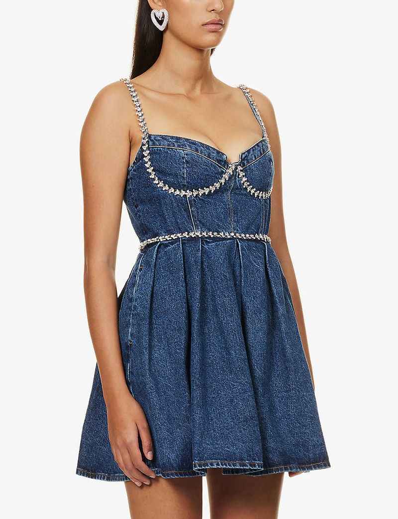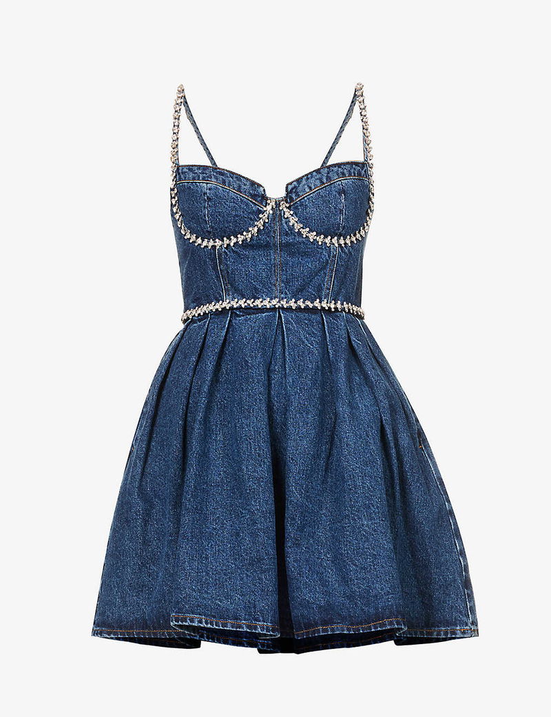 When it's not dreaming up fanciful occasionwear that could be plucked from the pages of a fairy tale, Self-Portrait's Han Chong showcases his expertise, experimenting with fabrics other than lace. Primed for dazzling the day or night away, the London-born label creates this dress as part of its latest line-up. Cut to a playful skater silhouette, its denim construction is shaped with an underwired bodice and dainty straps before it's trimmed with a row of glistening embellishments.