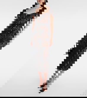 Exuding contemporary elegance, Self-Portrait's black midi dress debuted on the AW20 runway. It's crafted from sumptuous velvet scattered with glittering crystal accents and shaped with an angular sweetheart neckline for a modern note.
