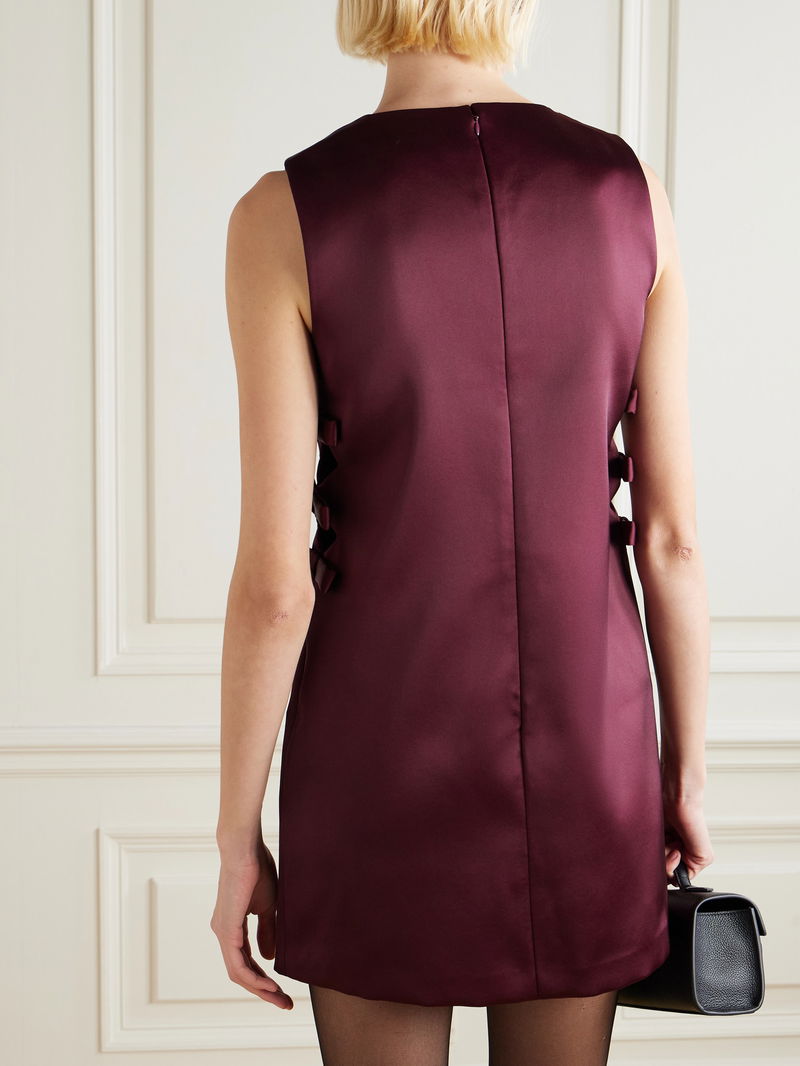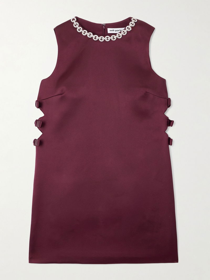 Self-Portrait’s meticulous attention to detail gives each piece its signature charm. This mini dress is cut from lustrous satin and outlined with crystal embellishments that illuminate the neckline. The shift silhouette features side cutouts finished with delicate bows for a playful yet polished touch.