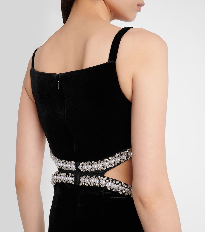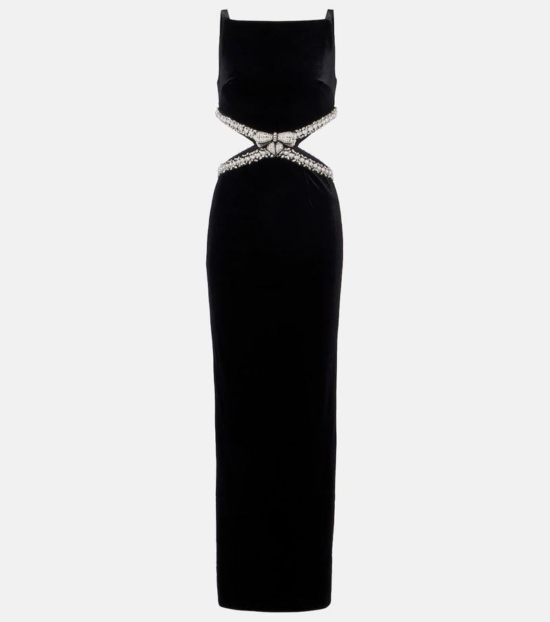 With a mission to celebrate women in every design, Self-Portrait has grown a strong cult following behind its classically feminine aesthetic. This maxi dress is crafted from soft velvet with bold cutouts.