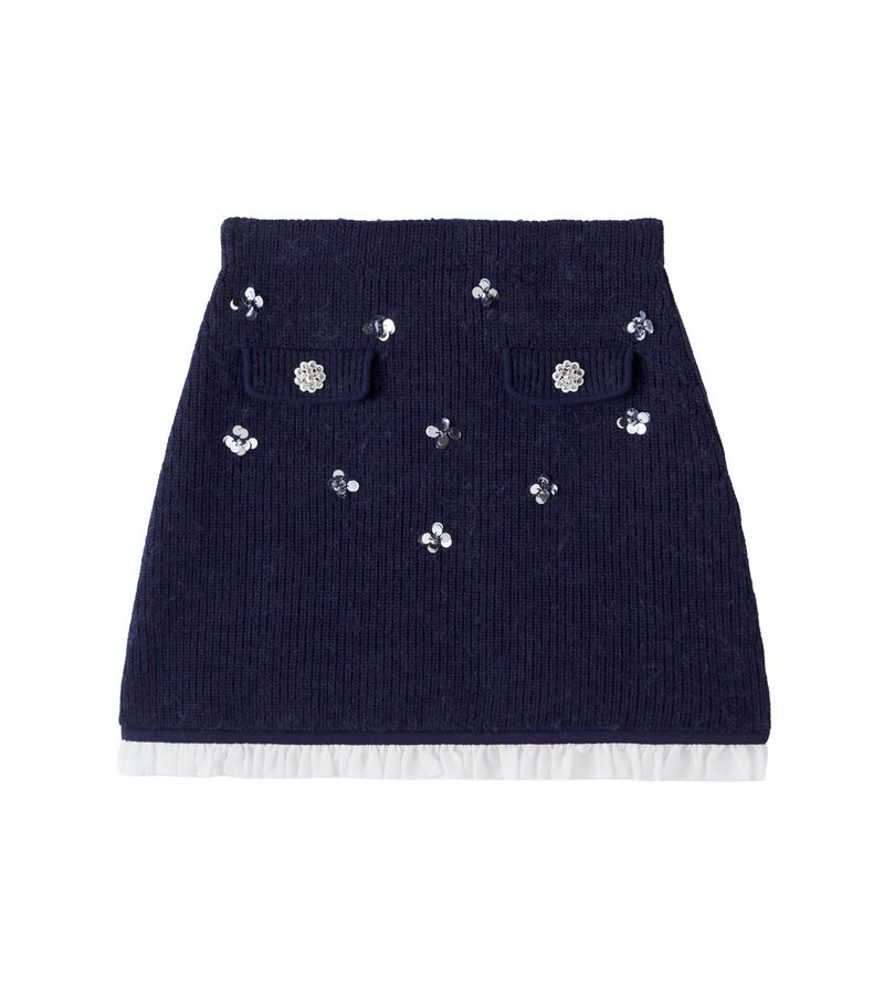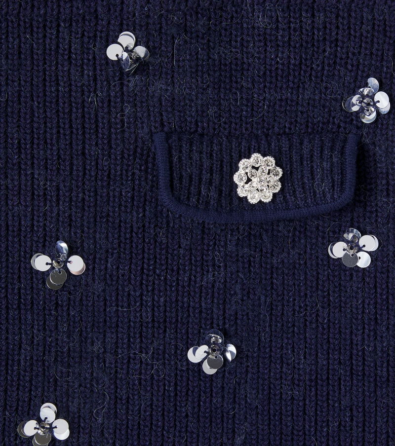 Self-Portrait Kids delivers pretty party pieces in mini-me proportions. This skirt is a ribbed-knit piece characterized by its crystal-embellished button fastenings atop faux flap pockets and sequins dotted across the front.