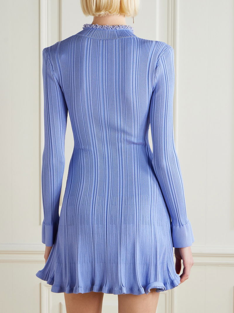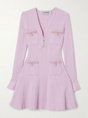 Self-Portrait’s dress is decorated with lustrous faux pearls along the placket and pockets. It's made from close yet flexible ribbed-knit and has flared cuffs and a fluted hem.