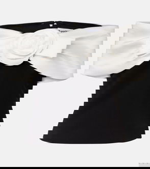 Self-Portrait’s romantic black top is crafted from sheer corded lace – a French fabric known for its textured finish created by fine cords which line the intricate floral design. It’s shaped with padded shoulders for an authoritative edge then falls to a straight silhouette, trimmed with feathery eyelash lace that emphasises the scalloped edging.