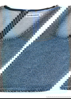 Self-Portrait's top is embellished with scores of crystals that sparkle beautifully from all angles. Made from brown mesh, it's gently gathered and slashed with a cutout just below the turtleneck.