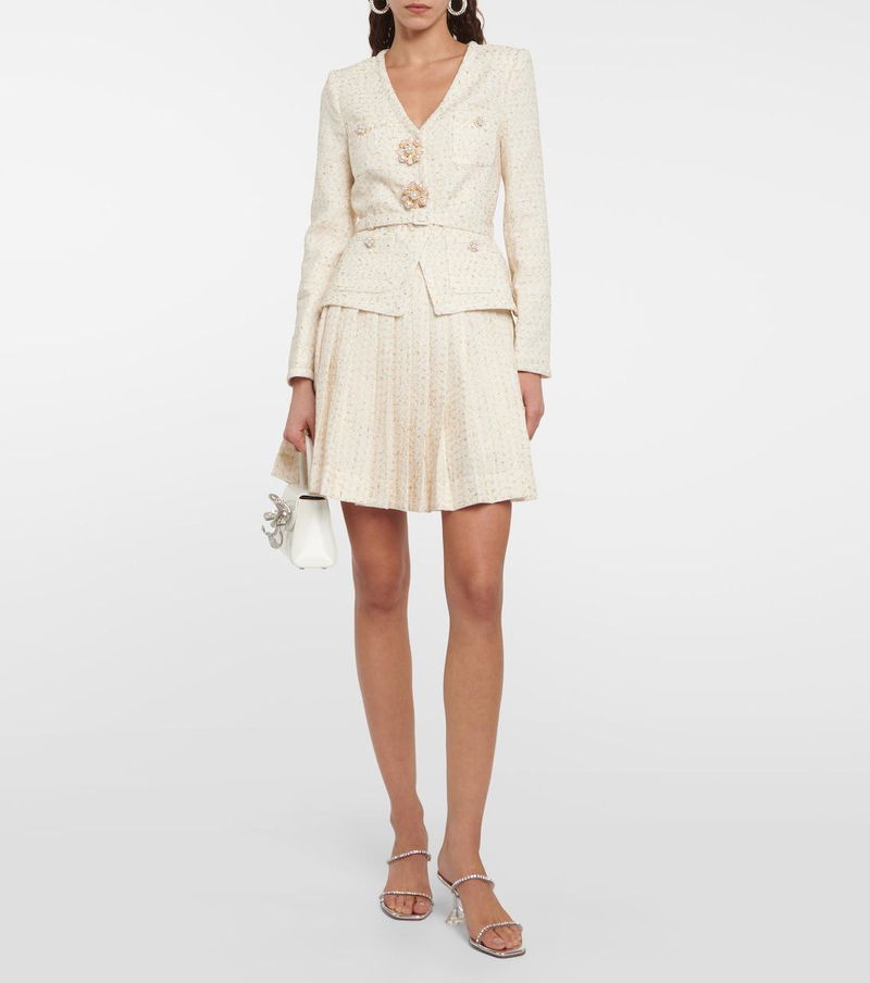 With a mission to celebrate women in every design, Self-Portrait has grown a strong cult following behind its soft feminine aesthetic. This minidress is made in a pleated bouclé-knit with metallic accents and a jacket detail.