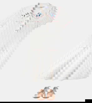 Self-Portrait Kids jersey dress. Round neck, ruffled cuffs, tulle skirt with floral design, sequin and bead embellishments, partially lined. Button-fastening keyhole at back.