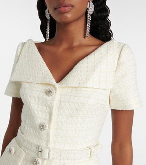 Han Chong accentuates the charming summertime feel of Self-Portrait's white top with a fluted peplum hem that’s trimmed in intricate scalloped lace. Crafted from cooling cotton poplin, it has a round neck that’s bounded by a bow and airy bar embroidery, then finished with an elasticated waist.