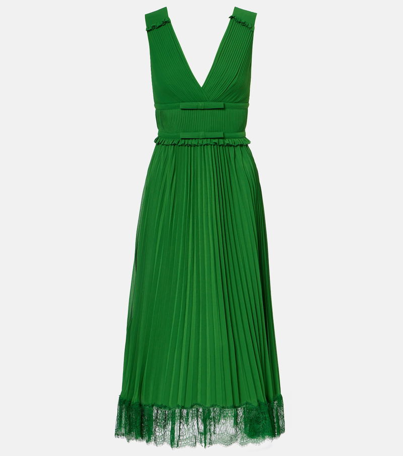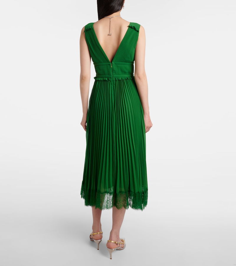 With a mission to celebrate women in every design, Self-Portrait has grown a strong cult following behind its soft feminine aesthetic. Made from chiffon with a lace-trimmed hemline, this midi dress has an A-line silhouette, a plissé skirt, and plunging neckline.