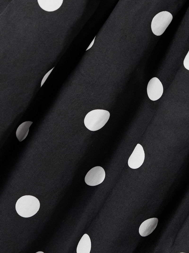 Self-Portrait's mini dress is reminiscent of pinup styles with its retro polka-dot pattern and shoulder-baring neckline.