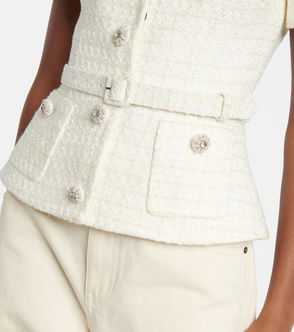 Self-Portrait’s founder Han Chong honed his skills studying at London’s prestigious Central Saint Martins and this white cotton-blend top demonstrates the label’s precision cuts. It’s made from semi-sheer corded lace with commanding padded shoulders and an exposed silver zip through the back.