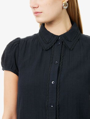 Self-Portrait echoes traditional academic dress with the black pussy-bow ties at the collar of this poetic white cotton blouse. Worn on the AW20 runway, it's cut to a relaxed shape with a ruffled yoke and intricate Chantilly-lace sleeve inserts. Add tailored shorts for an insouciant take on intellectual codes.
