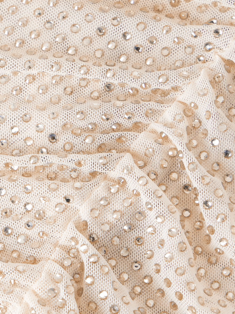 Self-Portrait’s blouse shimmers with champagne-toned crystals that catch the light beautifully after dark. Cut from stretch jersey, it’s ruched through the center to accentuate the figure and create a sculpted, flattering fit.