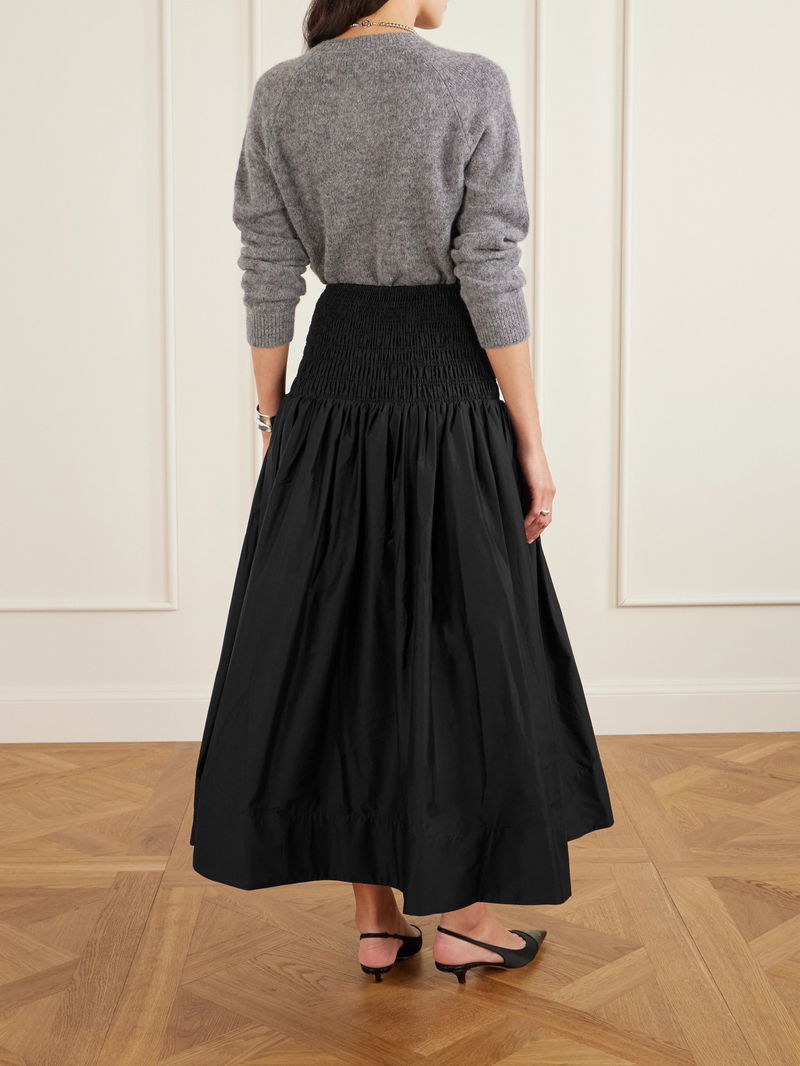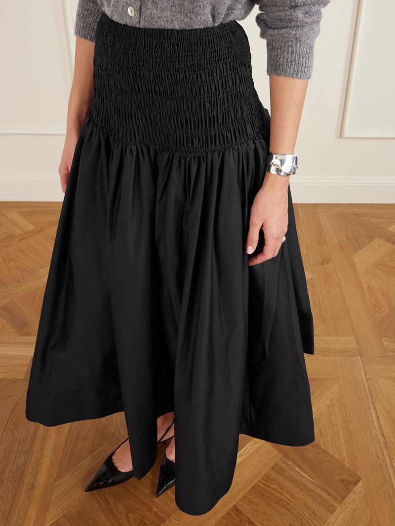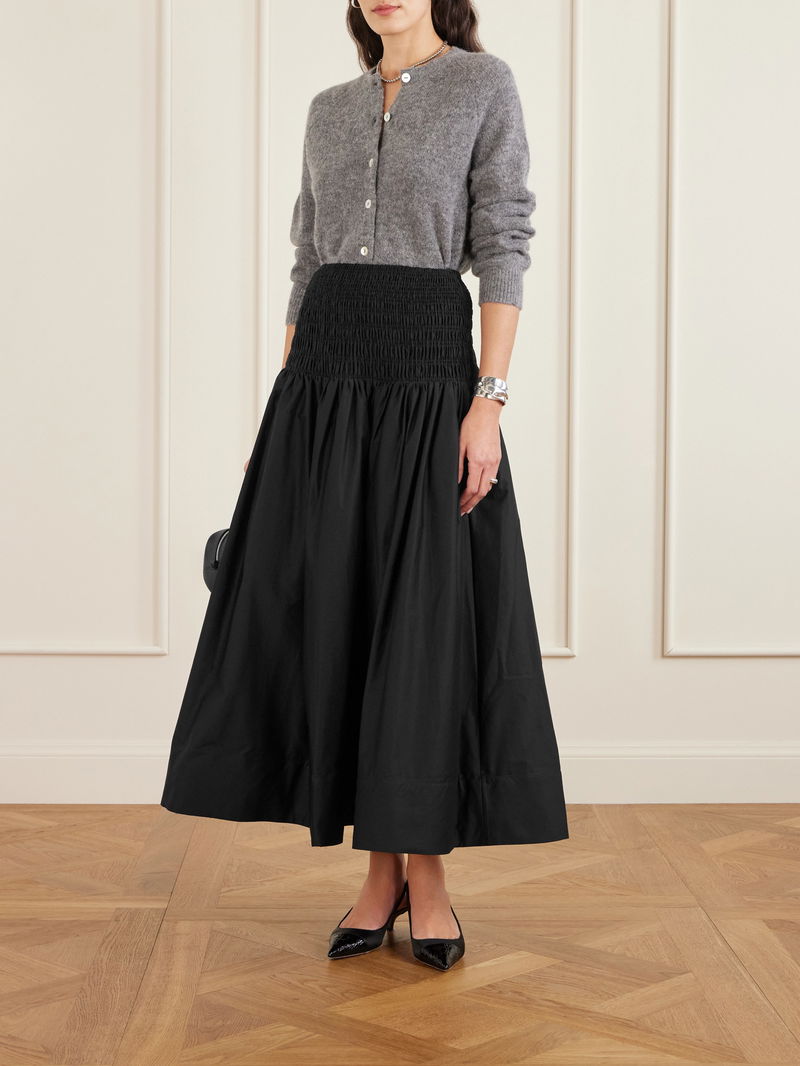Self-Portrait's skirt has an innate sense of drama. Fanning out elegantly from the shirred waist, it's made from cotton-sateen that's crisp and naturally holds the volume.