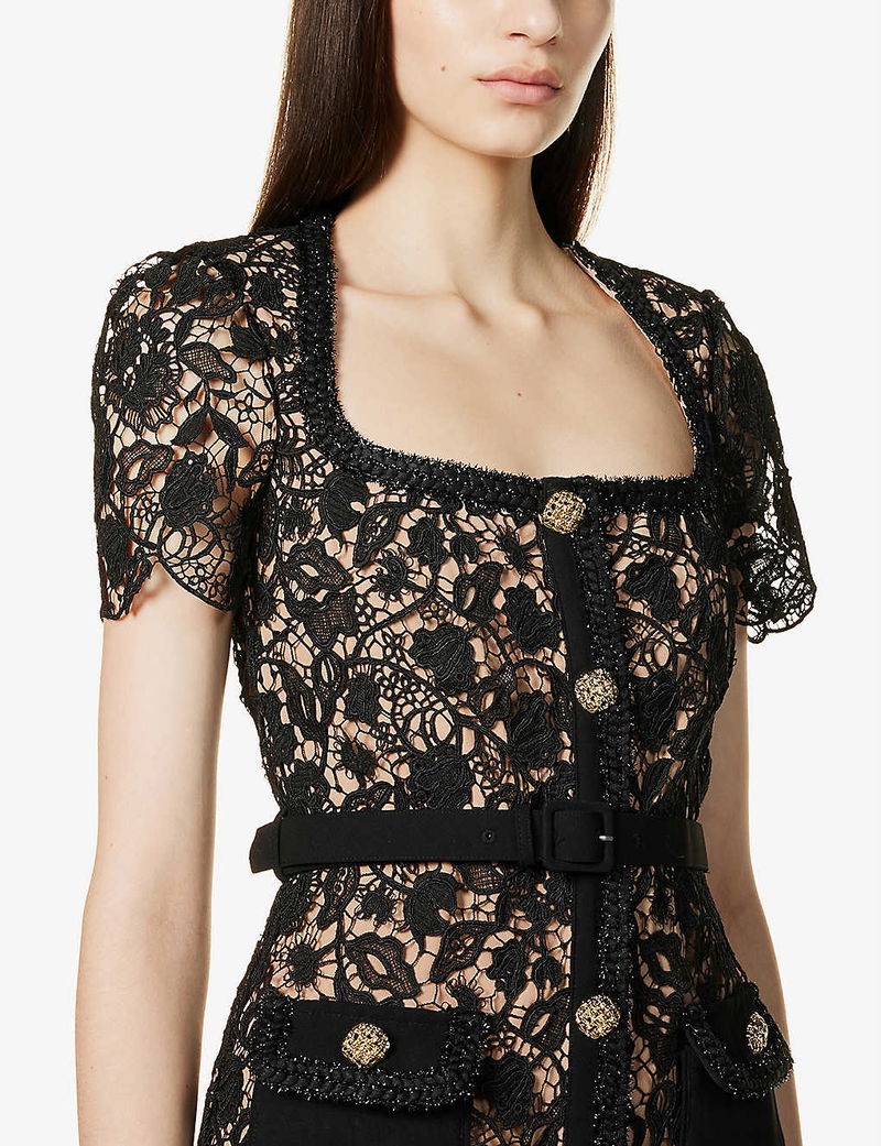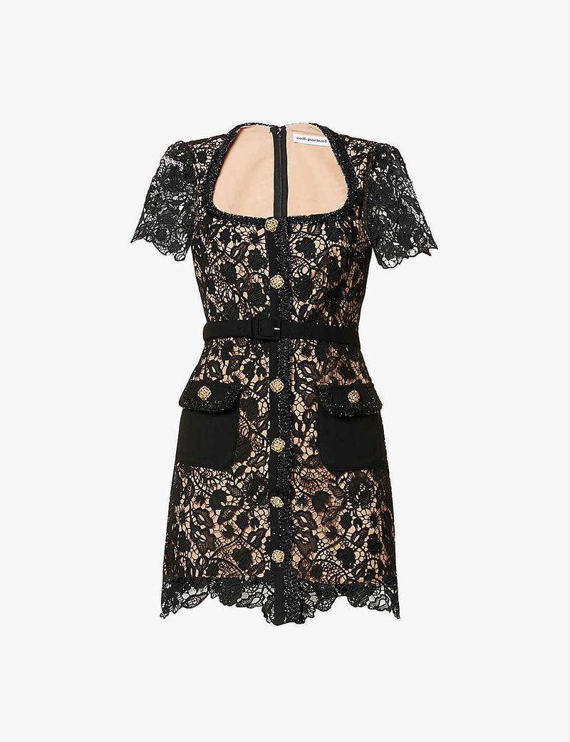 It's no wonder Self-Portrait boasts an accolade of celebrity devotees: just one look at its romantic holster of event-ready styles, and it's not hard to see why. Sticking to the label's signature aesthetic with one of its trusted hallmarks, this dress is realised in a floral broderie anglaise lace motif. Falling to a delicate thigh-skimming hem, its square-neck profile is topped with dainty pockets and gleaming buttons.