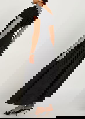 Look closely at Self-Portrait's light pink Starlet Rose midi dress and you'll notice clear sequins embroidered into the intricate floral pattern. It's trimmed with black grosgrain bows at the shoulders and falls to a graceful tiered skirt, then is lined with beige crepe.