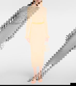 Self-Portrait's dress draws inspiration from nautical styles with its etched buttons and draped sailor collar. Made from ribbed-knit to skim your curves, it's detailed with navy stripes, ruffled cuffs and falls to a swishy midi hem. Wear yours with strappy sandals and a raffia clutch on vacation.