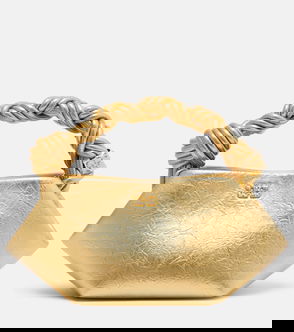 Self-Portrait satin top handle bag. Top handle, detachable chain shoulder strap, crystal embellishments, metal bow plaque with crystal embellishments, feet, internal patch pocket, leather lining, concealed magnetic press-stud fastening at flap front.