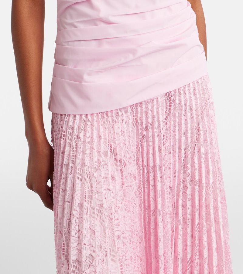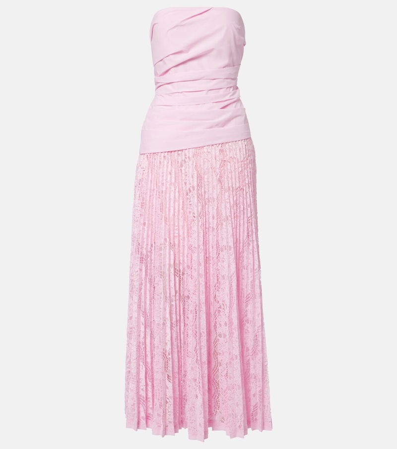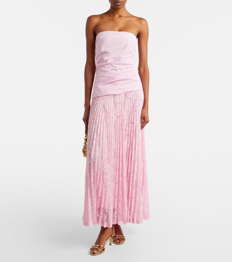 Inspired by sculpture and architecture, Simkhai's designs combine innovative construction with hand-detailing. The Annalise maxi dress features a gathered, strapless bodice and a fluid plissé skirt, made from delicate lace.