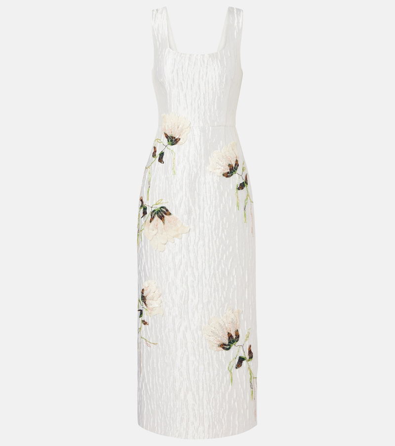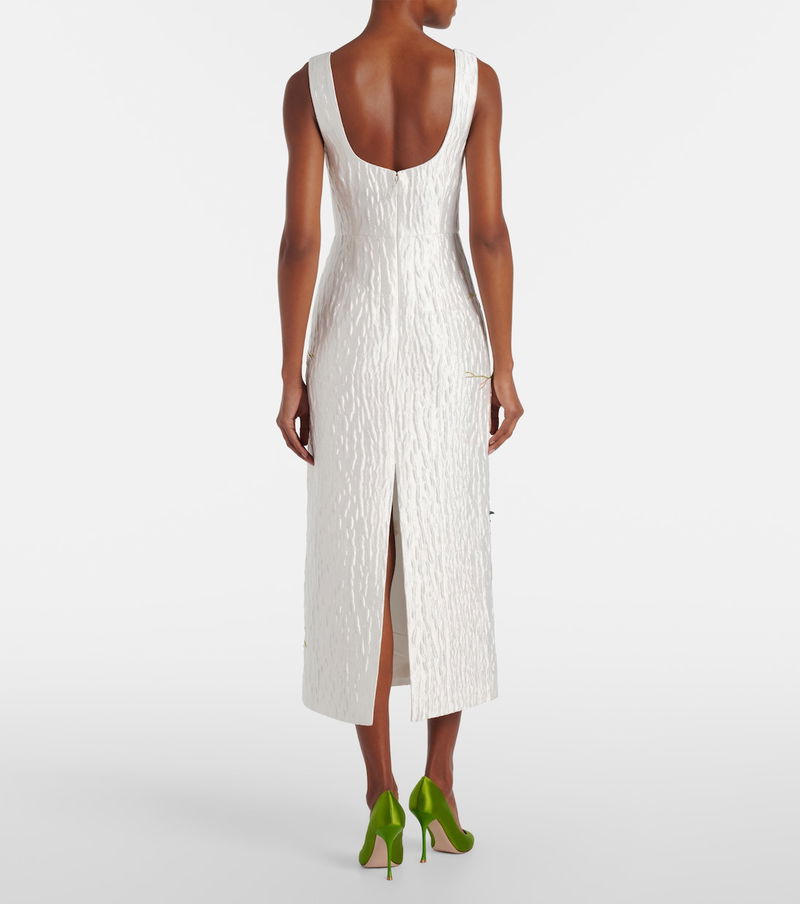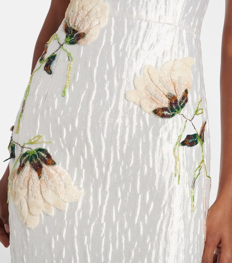 Inspired by sculpture and architecture, Simkhai's designs combine innovative construction with hand-detailing. Carefully crafted from jacquard fabric to a structured silhouette, the Lilibeth cocktail dress is characterized by its floral details, brought to life by eye-catching embellishments.