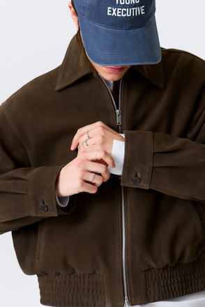 Inspired by sculpture and architecture, Simkhai's designs combine innovative construction with hand-detailing. The Marley jacket is crafted from suede and features a relaxed silhouette with a high collar.