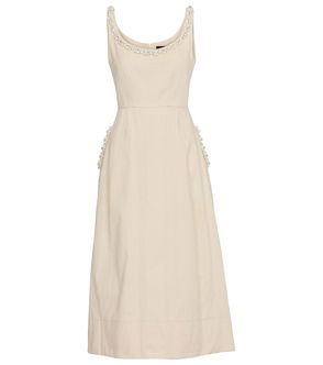 The delicate, asymmetric ruffles on Simone Rocha’s optic-white shirt dress take inspiration from vintage tablecloths to inform the label’s romantic aesthetic. It’s crafted from airy cotton poplin to a tiered construction with a point collar, patch pocket and buttoned cuffs. Complete the ethereal mood by wearing it with ballet flats.
