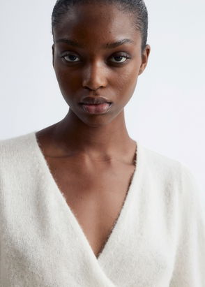 Cardigan, Mohair-blend, Faux pearl, Cropped, Ribbed trims, Button fastenings through front, Side slit hemline, Mid-weight open knit.