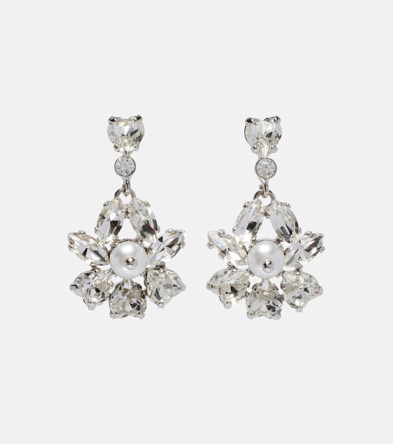 These Simone Rocha drop earrings are adorned with the signature glass pearl embellishments, a symbol of the brand’s romantic elegance. The flower-shaped accessories are finished with dazzling crystals.