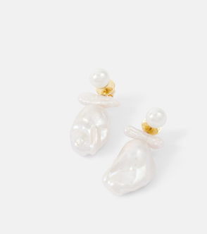 Simone Rocha draws on vintage calligraphy to create the letter pendant adorning this gold single earring. It’s crafted in Portugal from gold-plated sterling silver with a slender hoop and glossy faux pearl, then fastens with a post back.