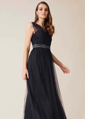 Dress, Cotton-jersey, Tulle trims, Ruffled, Layered, Two side welt pockets, Asymmetric hem, Slips on, Non-stretchy fabric, Mid-weight fabric.