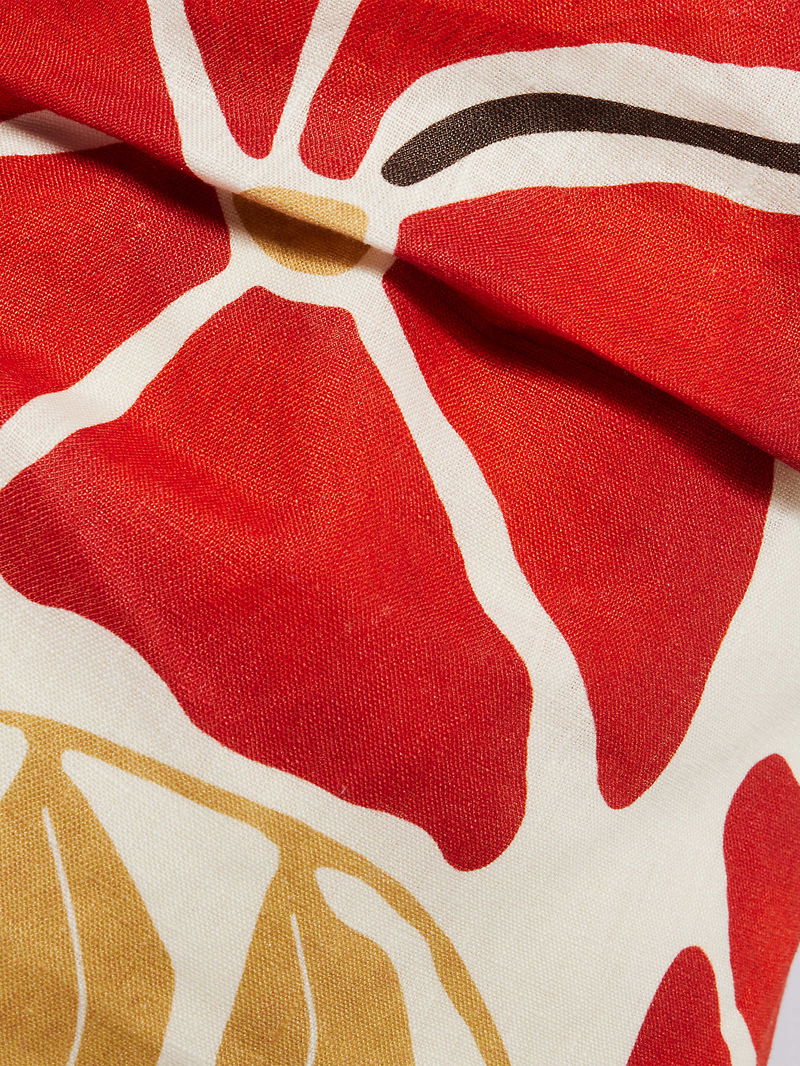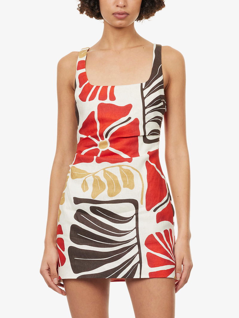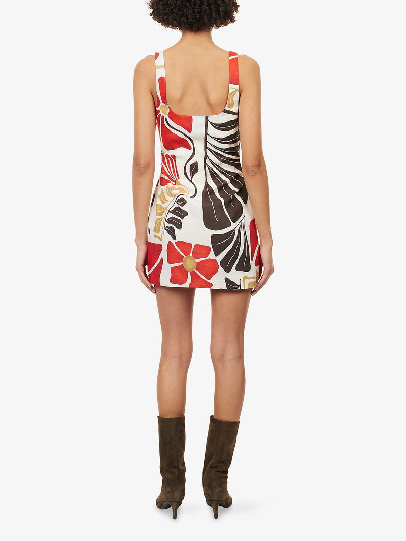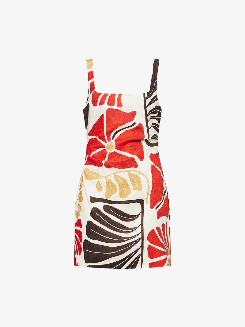 Babydoll Mini Dress With Pleated Bodice In Red Floral Print