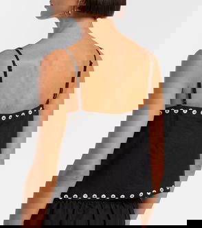Floral-Appliqué Halterneck Cotton Poplin Top