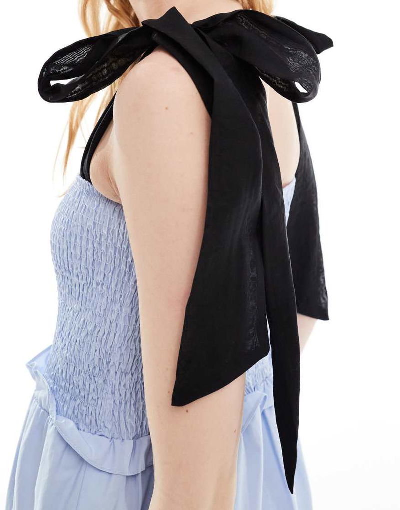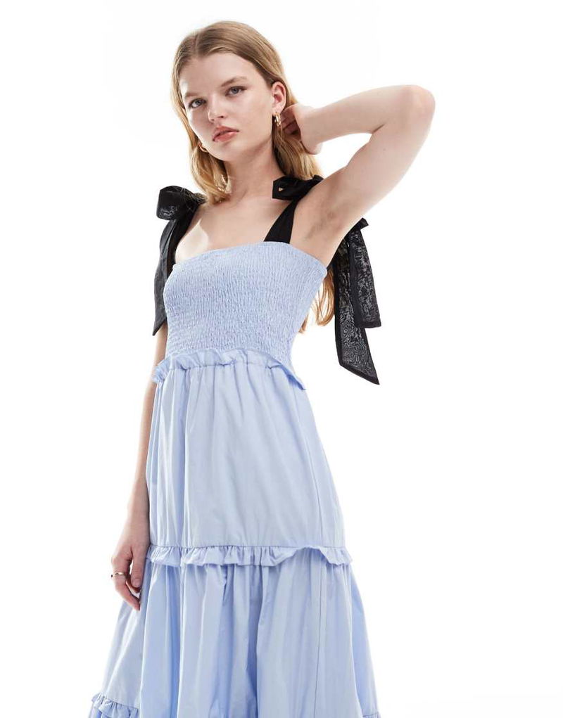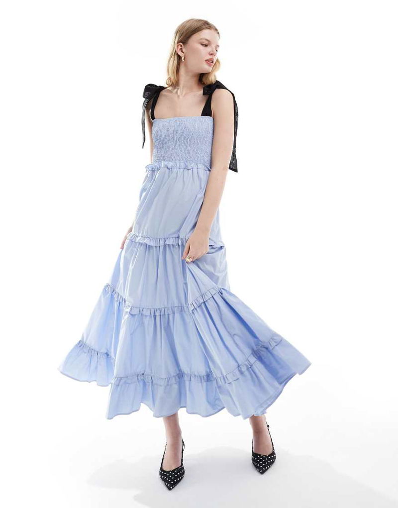 Dream bow shoulder ruffle midi dress.