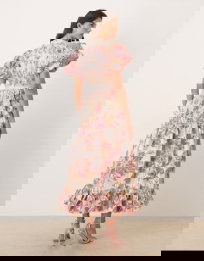 Dream Cabaret 3d floral puff sleeve drop waist midi dress.