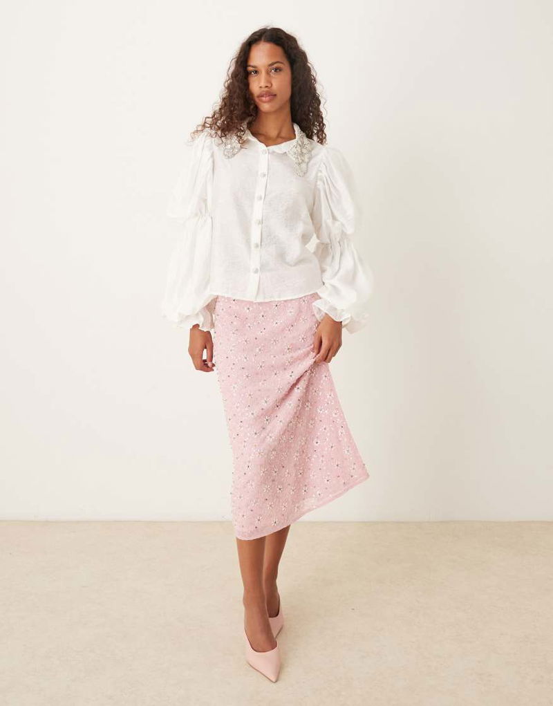 A contemporary European label based in London, Sister Jane combines current trends with its own whimsical eccentricity. Capsule collections are available for a limited time, giving every piece an exclusive element, while decorative collars and floral prints give dresses, blouses and jackets a cottage core aesthetic.