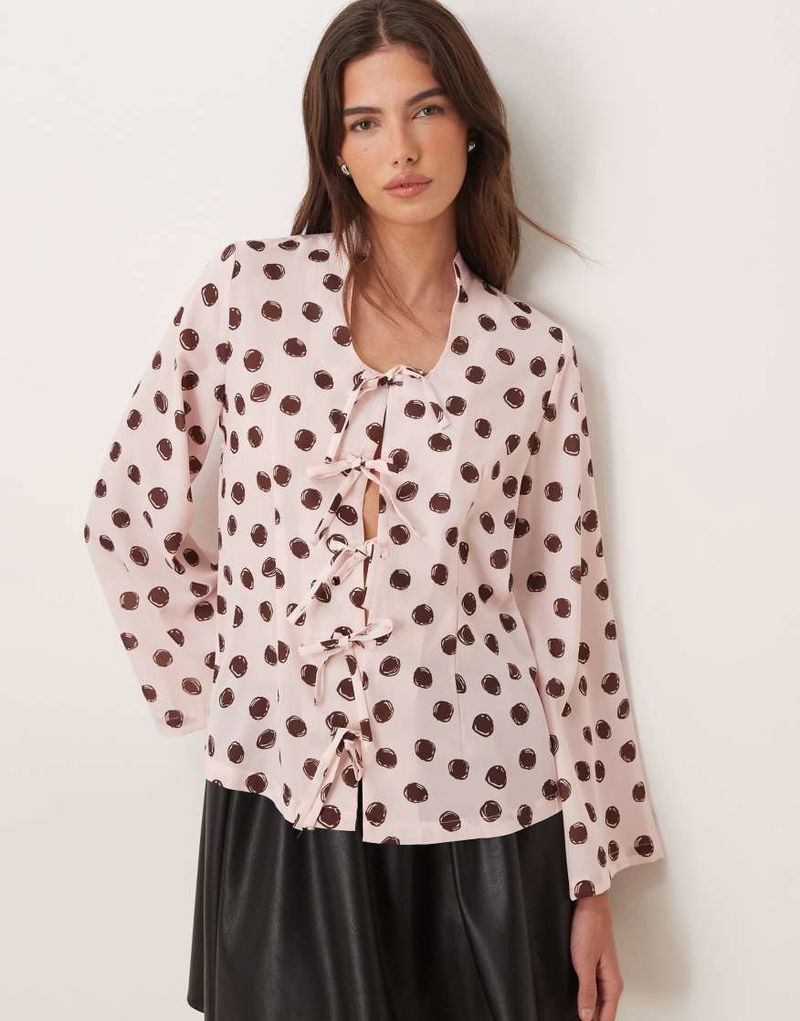 Illume Polka Dot Bow Blouse Co-ord In Pink