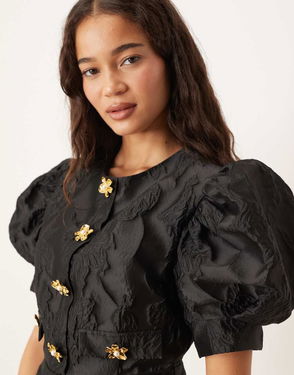A contemporary European label based in London, Sister Jane combines current trends with its own whimsical eccentricity. Capsule collections are available for a limited time, giving every piece an exclusive element, while decorative collars and floral prints give dresses, blouses and jackets a cottage core aesthetic.