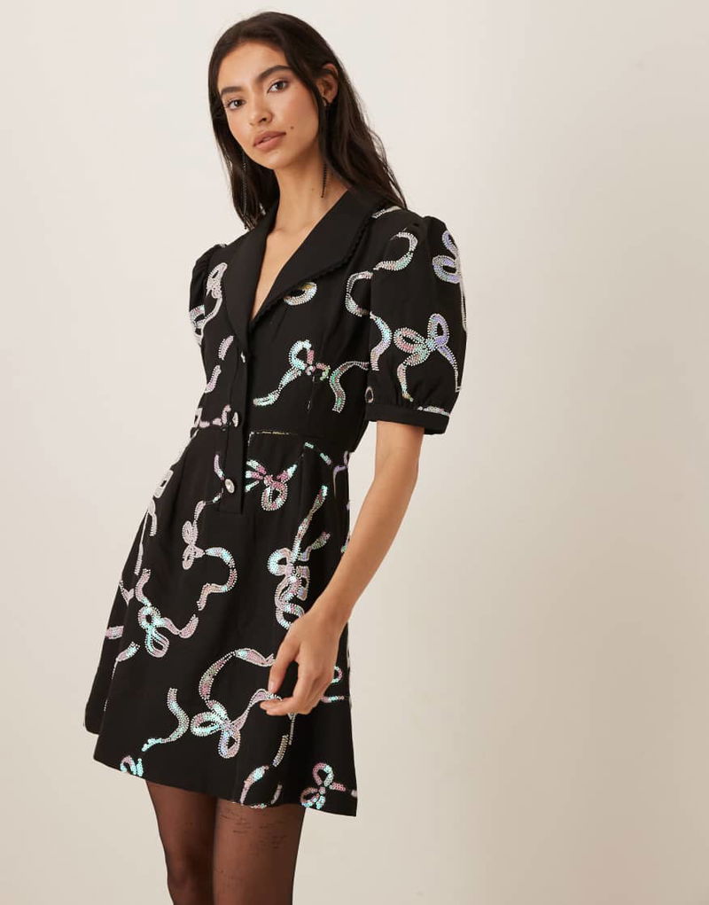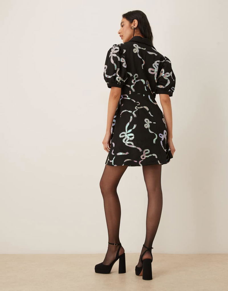 Ripple Bow Embellished Mini Dress