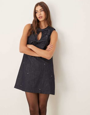Sleeveless Shift Dress In Black With Contrast White Bow