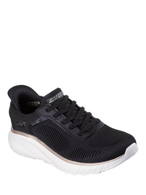 Step into athletic style and comfort wearing BOBS Sport Squad Chaos trainers. Designed with the exclusive Heel Pillow, this fashion style features an engineered knit upper with stretch laces and a cushioned Skechers Memory Foam insole. Choose Skechers Hands Free Slip-ins for an easy, secure and comfortable fit.