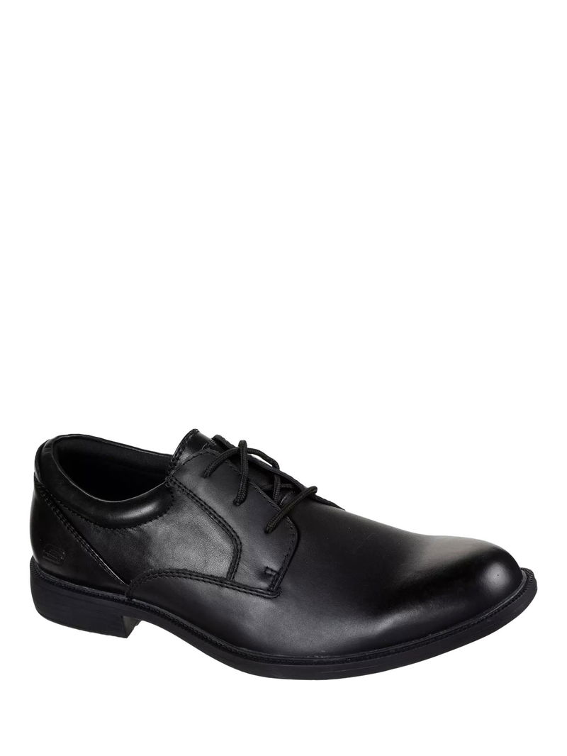This waterproof design features a smooth premium leather upper in a dress casual lace-up with an Oxford toe, plus a cushioned Skechers Air Cooled Memory Foam insole. Skechers Goga Mat Arch cushion gives added support. Also designed with a shock-absorbing midsole and high traction, flexible rubber outsole.