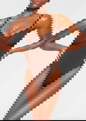 Description: SKIMS' versatile bodysuit is designed to be worn both as shapewear and as part of your outfit. It's made from smoothing stretch fabric for a compressive fit and has a scooped V-neckline and adjustable straps. Small to size. See Size & Fit notes. - Net a Porter Materials: 61% polyamide, 39% elastane; lining: 100% cotton Product Code: 46376663162836480